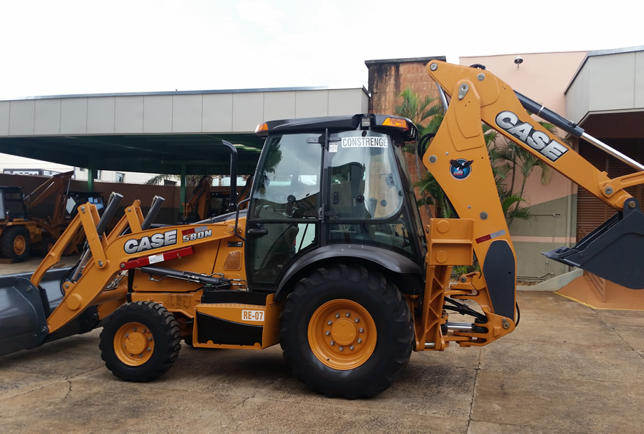 Retroescavadeira CASE modelo 580M e 580N, cabinada com ar condicionado, Cabine homologada ROPS e FOPS.